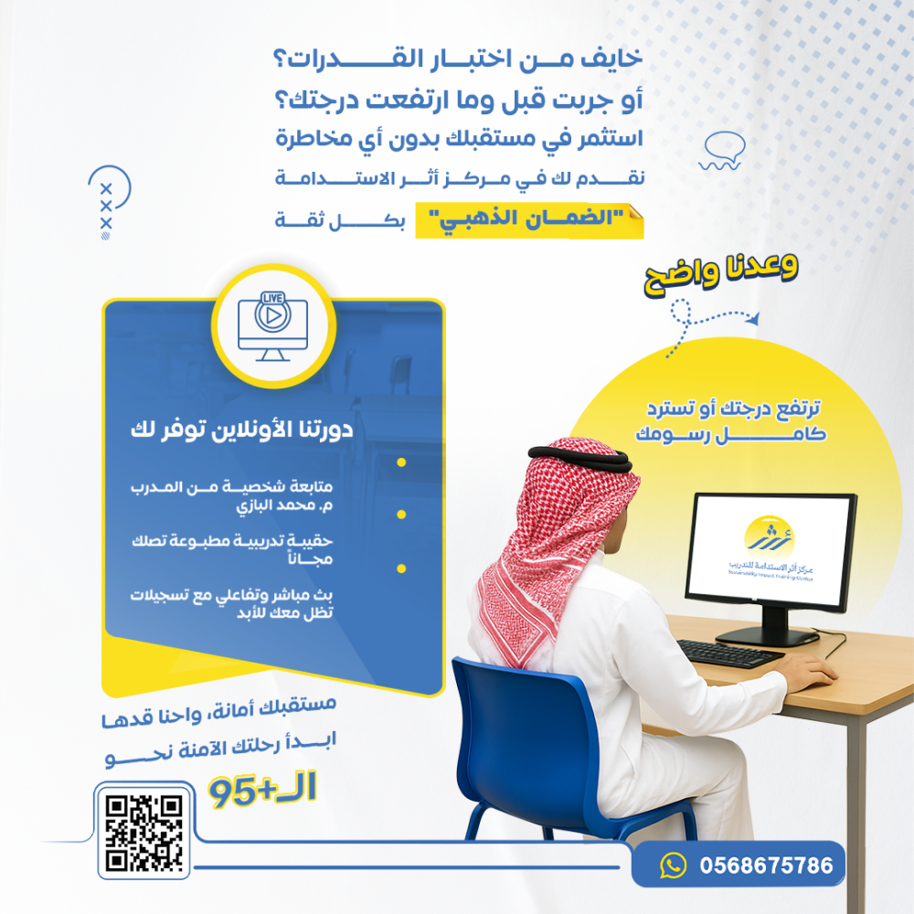 مع دورتنا التدريبية التفاعلية المباشرة، أصبح التحضير للاختبار أسهل وأكثر متعة! نقدم لك كل ما تحتاجه لتحقيق درجات مميزة والوصول إلى طموحاتك الجامعية.